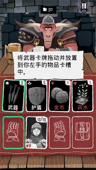 3、根据提示将武器卡牌拖动至左手物品卡槽中,完成装备操作。