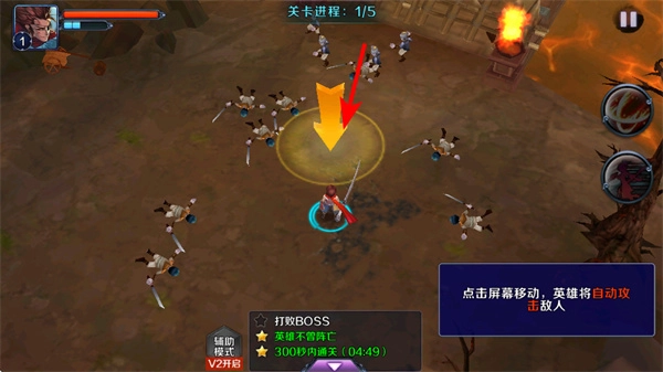 2、进入关卡场景后,点击屏幕控制角色移动至目标区域,这是推进战斗的基础操作,会自动攻击范围内的敌人,清理战场单位。