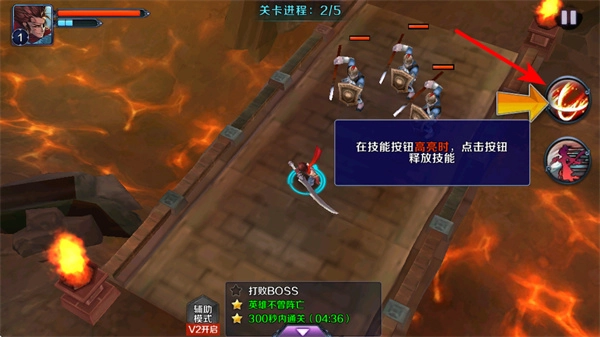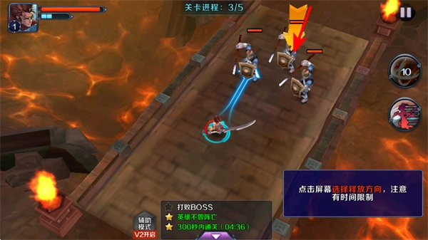 4、点击屏幕选定技能释放方向,这是精准输出的重要操作,在时间限制内确定方向让技能命中更多敌人,提升效率,推进关卡进程。