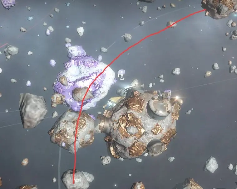 5、划主要是学会画圈,如图,矿物应当在计划圈的边缘,这样矿船才能提早一步使用曲率引擎,否则只能用续航速度来回运送矿物,巡航速度比曲速要慢数倍
