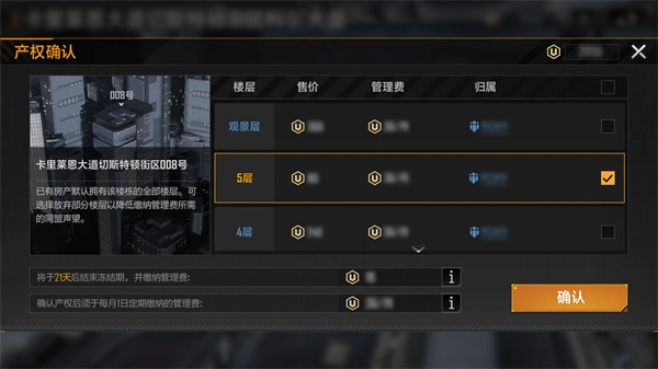 新购置同盟产业的同盟,需在购买时预先支付当月的管理费用,而应收取的同盟声望则会依据楼层管理费的收取标准以及本月剩余天数,按比例来收取。所以,同盟在购置产业时,也得留存足够的声望。