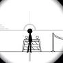 2、移动狙击视角至门口区域,锁定此处出现的目标角色,准备执行击杀操作。