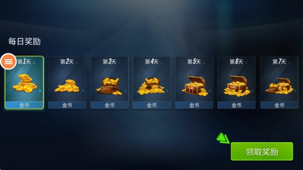 1.上线之后玩家可以领取金币奖励。