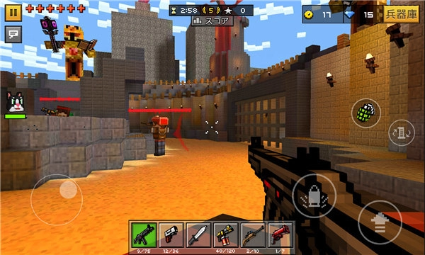 《像素枪破坏射击》是一款采用像素风格画面的大逃杀类游戏。在游戏中,玩家将操控一个方块人角色,通过跳伞进入吃鸡赛场。在这里,你需要搜集各类武器与装备,借助手中的武器逐一击败对手,坚持到最后就能成为最终的胜利者。对这类游戏感兴趣的玩家,还在犹豫什么?快来体验一番吧!