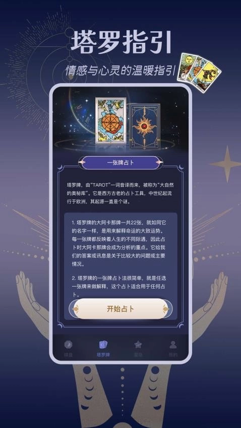 强大且智能的塔罗占卜功能,在应用中可轻松占卜自己的每一天,高效解读问题;