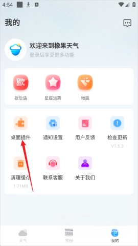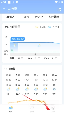 1、启动橡果天气App后,点击界面右下角的【我的】按钮,即可进入个人中心页面;