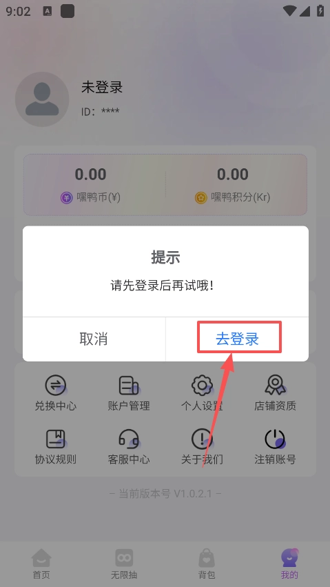 3、此时会弹出提示框,点击框内 “去登录” 按钮,跳转至登录界面。