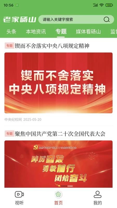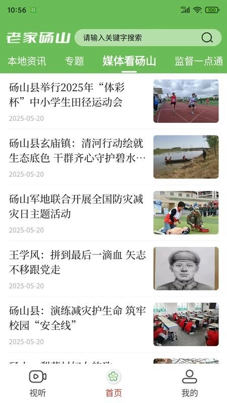 1、启动软件后进入视听板块,浏览本地新闻类视频(例如“我是主持人——把安徽讲给世界听”这类内容)。