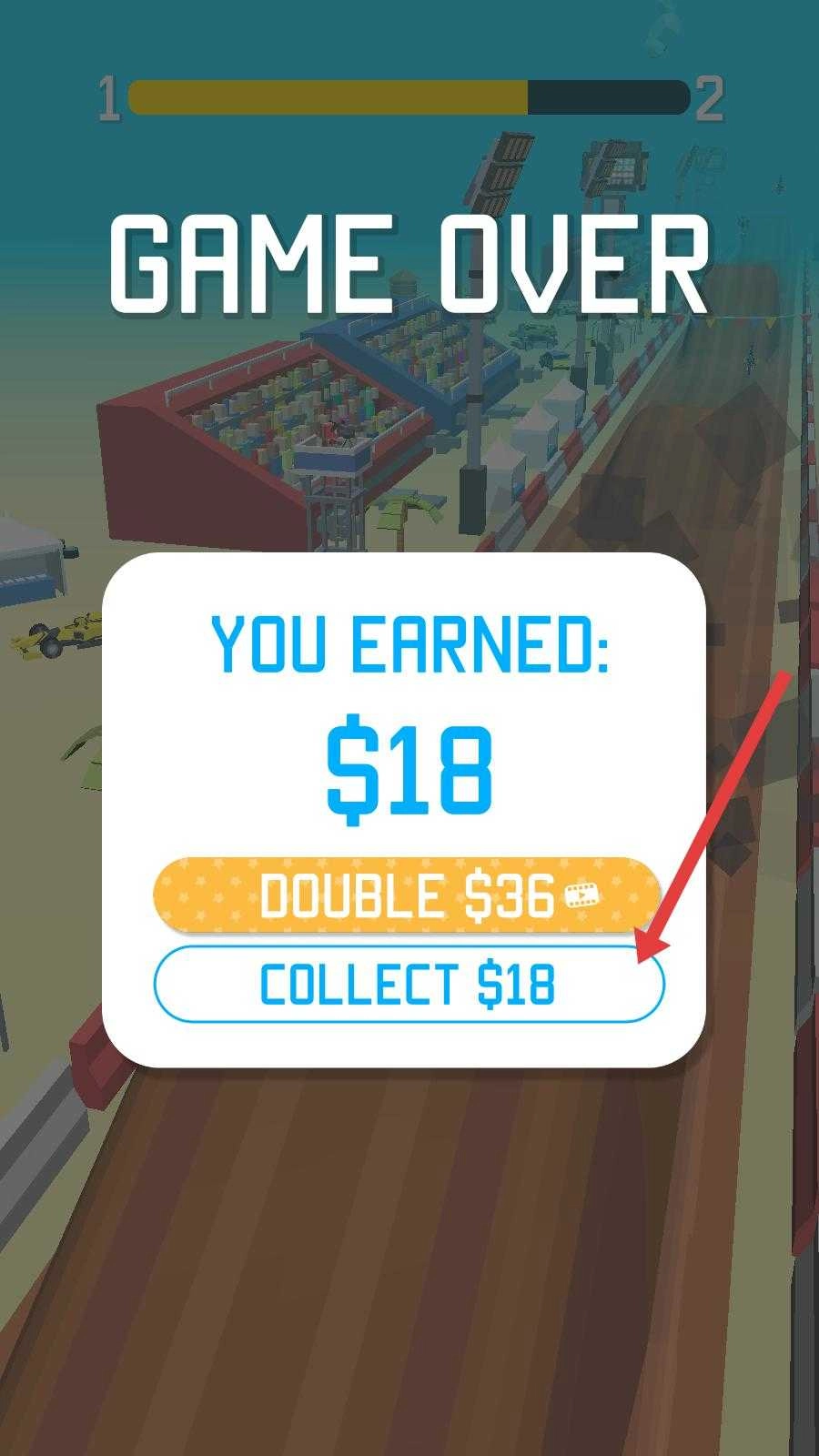 4、若比赛结束,界面会显示游戏结束,同时展示获得的金币,可点击收集金币,为下次比赛做准备。