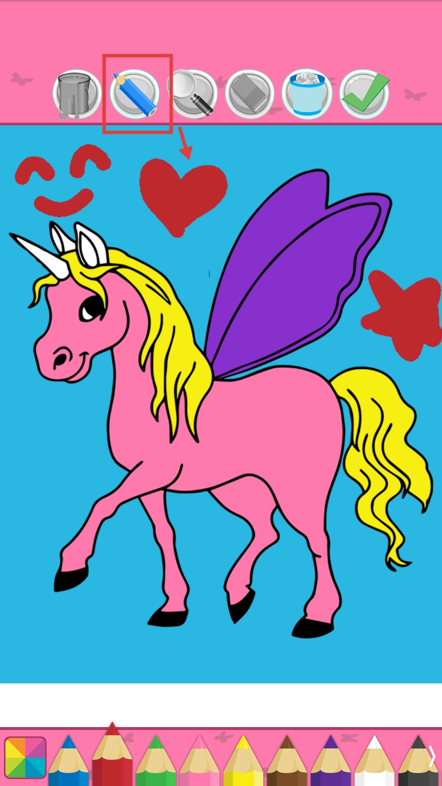 3、选好图案后,我们可以从下方的颜料桶中选择颜色,为图案的不同部分上色,打造专属作品。
