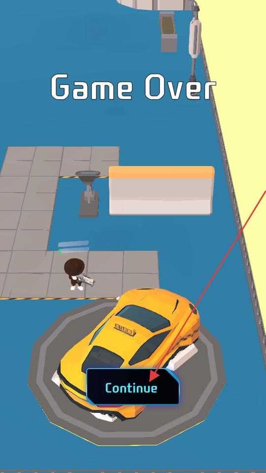 4、如果冒险失败界面显示游戏结束提示,此时点击继续按钮,重新进入游戏,再次操控角色进行冒险,调整策略以顺利完成关卡挑战。