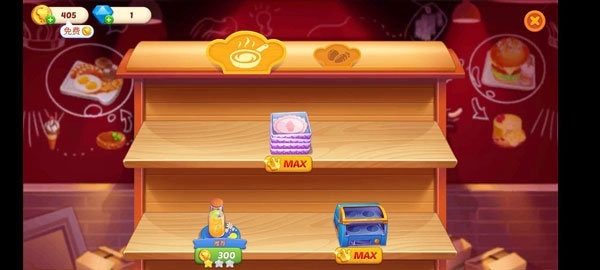 4、如果想要制作速度更快和赚取更多金币,可以在升级界面升级厨具和食材,厨具的等级越高,制作美食花费的时间就越少,食材的等级越高,售价也会越高