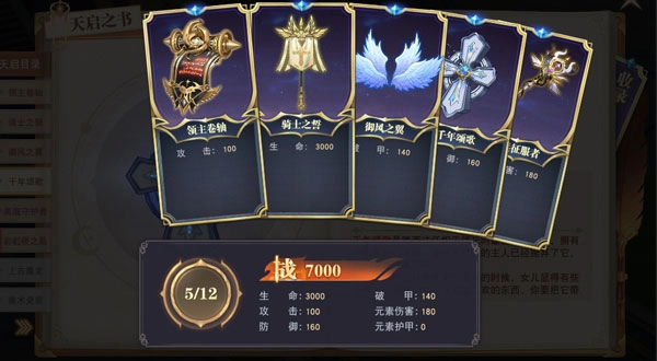 1、全书分为六个章节,分别是解锁领主系统的领主卷轴,开启英灵系统的骑士之誓,解锁羽翼功能的御风之翼,以及千年颂歌、高庭守护者、彩虹桥之匙、上古魔龙以及奥术灵装等总计12章。每解锁一章节,不仅能够开启新的系统,还能提供永久性的战斗BUFF,大幅提升角色的属性值或是提高战斗力!什么叫“书中自有颜如玉”?什么叫“书中自有黄金屋”?什么叫做读书人?!给我读!