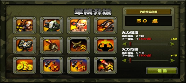 2、在游戏开始前你可以对你的军械炮台进行升级,能够大大的提升你的作战能力;