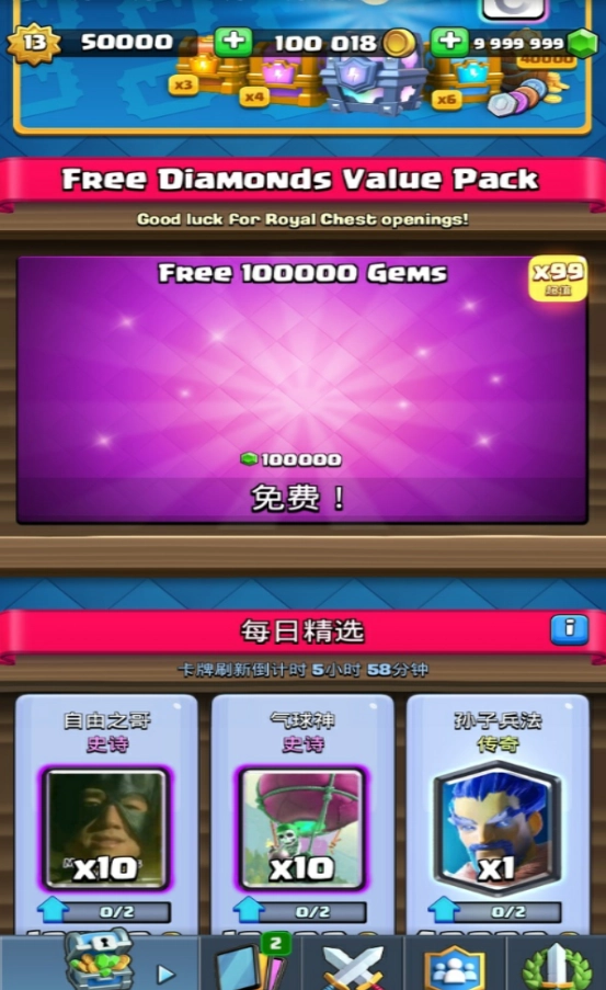 这个游戏非常鼓励玩家相互交流。加入部落可获得100钻石奖励。同时,可以采取类似的COC捐赠模式。玩家可以互相捐赠卡片,捐赠卡片的小伙伴可以获得经验和金币!