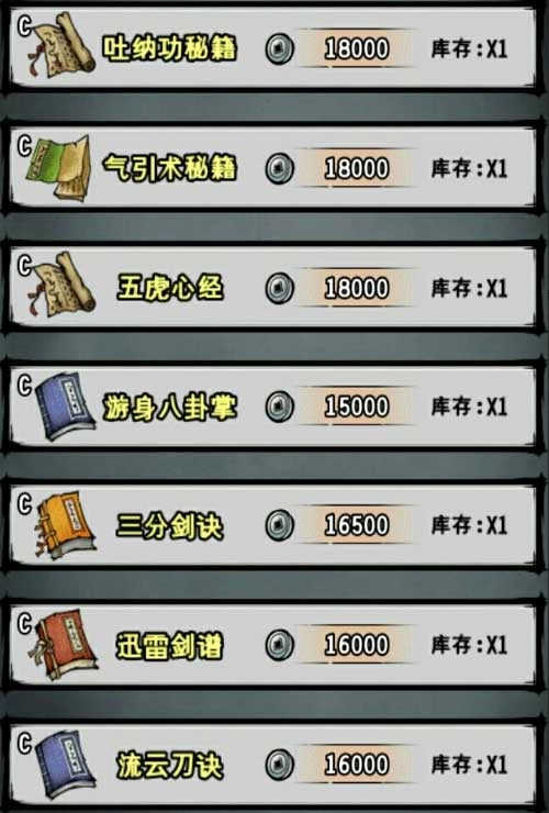 PS:装订一本所需张数---C级功法需要8张、B级功法需要16或32张、A级功法需要32或36张、S级功法需要108张。