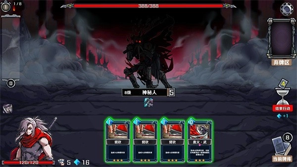 4、有了以上三类牌,其他牌想怎么配就这么配。而且过图奇快,最后boss就潜行+放火或者捆绑或者乌鸦吸血,都可以无伤过关。