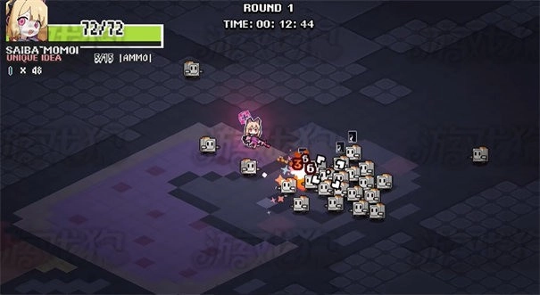 3、进入地下城后,通过虚拟摇杆移动角色,点击屏幕发射攻击消灭敌人。