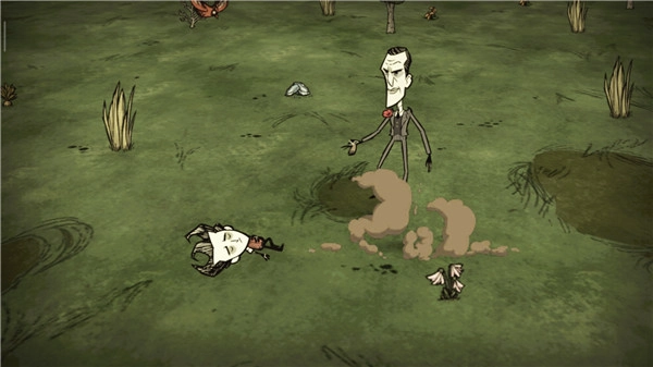 玩家选择角色后即可开启冒险之旅,需要特别注意的是,当角色的饥饿值或精神值过低时,很容易遭到来自异世界的幽灵攻击。玩家可以通过生火取暖、收集食物、建造家园等方式保障生存,尤其在黑夜来临时,务必点燃火把,否则角色会持续损失生命值。