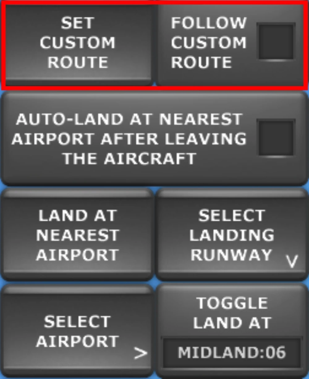 3、启动这个按钮后,当你离开飞机时飞机能自动启动降落功能,自动降落在附近的飞机场。