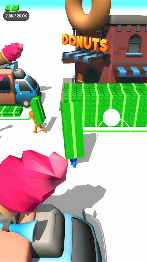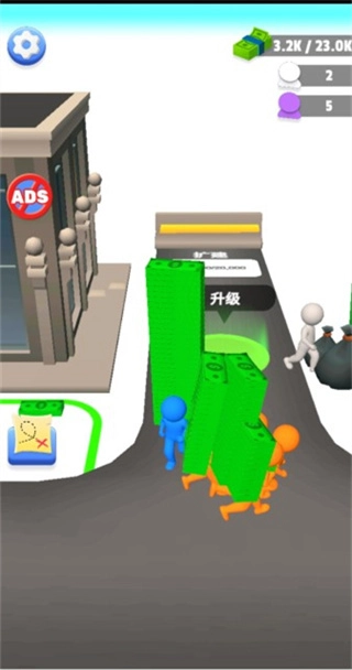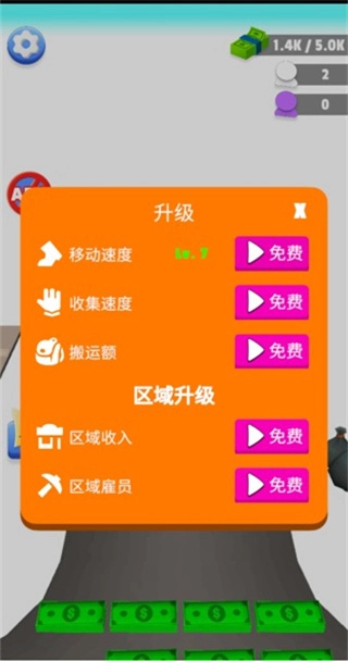 1、在这里玩家的任务就是不断挣钱,搬运钞票来扩展区域。