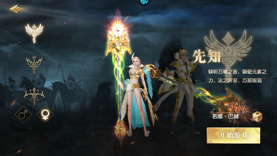 1、启动游戏后,玩家可从游侠、先知、剑士这三大职业里挑选一个,接着点击开始游戏;