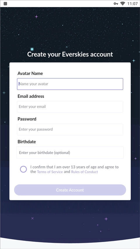 1、打开Everskies(也叫永远的天空):这是一款虚拟装扮类游戏,需要使用加速器才能启动,首先点击“@ Use email”进行账号注册;
