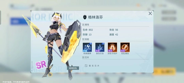 因为SSR里只有一个坦克,她就作为兰思妮的下位替补吧!强度也是可以的,因为她的防御可以叠很高很高,同时也可以升格到SSR!