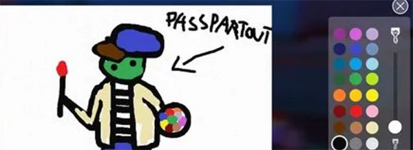 2、你可以在白纸上随意绘画,通过点击右侧的画板可以调整笔刷大小、颜色,清楚画板等。