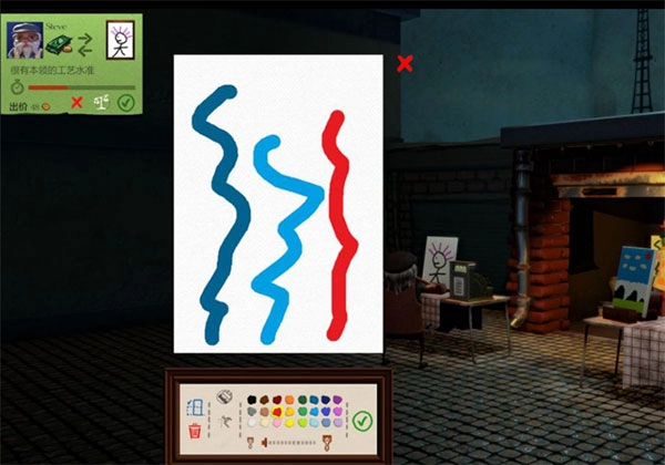 当玩家们将自己的画展示出来的时候,就会有喜欢的人去竞拍。如果你不愿意以同样的价格出售,那么你可以点击屏幕上的“天平”按钮,这意味着你已经开始讨价还价了。