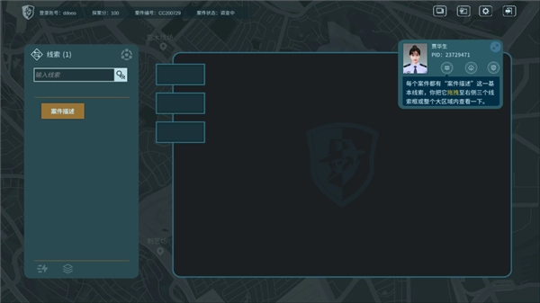 游戏系统中的案件都是炽城真实发生过的并且是以关键线索的形式进行存储的,每个线索都包含了关于线索的信息,你需要通过查看信息不断地找到新的线索,把碎片化的线索内容在脑海里拼凑出完成的案件并推理出案件的发生经过,玩家在这里只需要回答对了系统中有关案件的问题就算是了一个案件,并且在案件之后还可以查看罪犯的“犯罪陈述”。