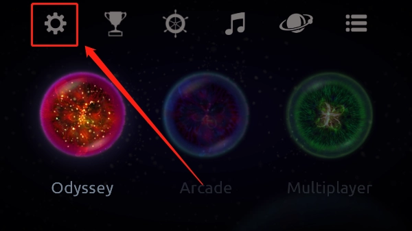 1、启动星噬最新正版游戏,进入游戏界面后,第一步点击左上角的设置图标。