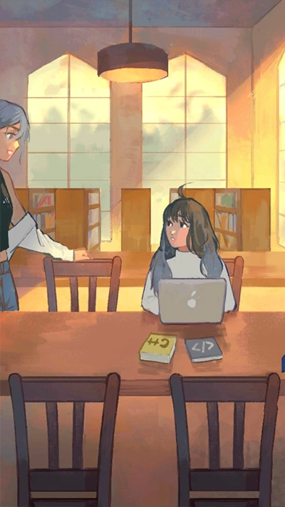 在游戏的初篇介绍了两位女孩的相识,你可以滑动屏幕来了解她们的故事