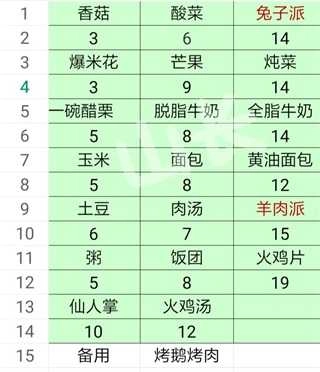 蜜蜂更新版本时和伙伴肝出来的第3个家被刷没了,心态崩了,加上当时驱逐猖獗就一直没玩,玻璃瓶版本我又回来了,和伙伴3天又肝了一个家,更新后发现很多新食物,就补充在后面,目前版本我自己已经不叠食了,回档方便使我快乐,上述叠食表我觉得已经够用了,可用部分新食物进行替换,有需自取,我要去做狼皮工厂了,拜拜