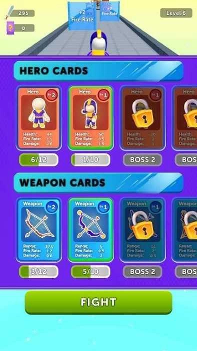 1、进入游戏首先要选择一个角色以及武器,然后点击fight按钮开始战斗。