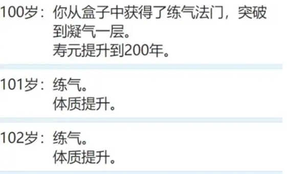 第三步:当玩家使用神秘小盒子进入修仙后,每个境界需要100年的寿命,然后就正常修仙吧。