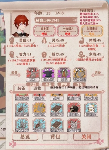 9.前期在房间看书有几率能看到冒险家的故事,看完他的故事可以获得+10智力