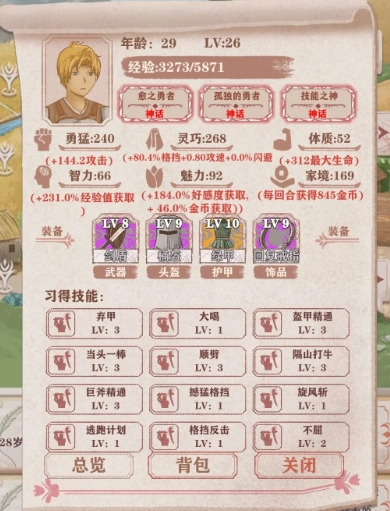 14岁,老爹离开,留下800金币,好感大于250,还能多留一个生命>80%,伤害减半的神奇。