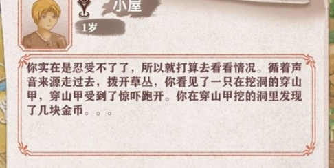 小屋作用:和母亲要钱16岁之前都可以有钱拿 家境与好感都决定了母亲给的钱数(母亲是概率出现)去自己的房间看书,(前面几岁是15点概率加一,后面是十点体力概率加一)增加智力(有一个特殊彩蛋…读一本故事书,连续看这本故事书之后增加十点智力)做手工增加灵巧 30点加2 (前面几岁是没有做手工这个选项)然后是去院子(前面只有在院子里奔跑30+2体制)可以在这锻炼,可以增加力量和体质都是30+2,