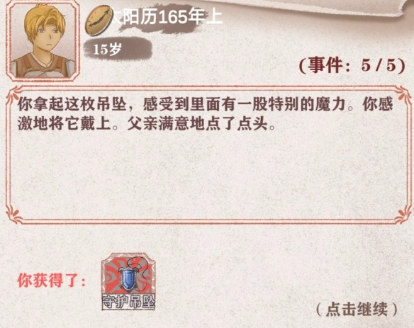 爸爸的好感度得拉,后面会给一个神器项链,效果是低于百分之40血时免伤百分之25,还是挺好用的,具体多少数值不知道,反正你去田里帮爸爸种田还能顺手加家境,何乐而不为呢。