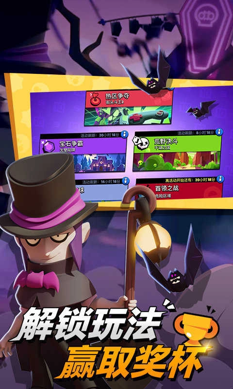 6、荒野决斗(单人/双人):生存模式,战斗到底。收集能量块,强化英雄。与朋友组队或单干,成为激烈格斗竞技场的最后幸存者!胜者为王!