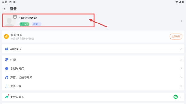 2、在设置页面,点击账号区域,进入账号功能列表页。