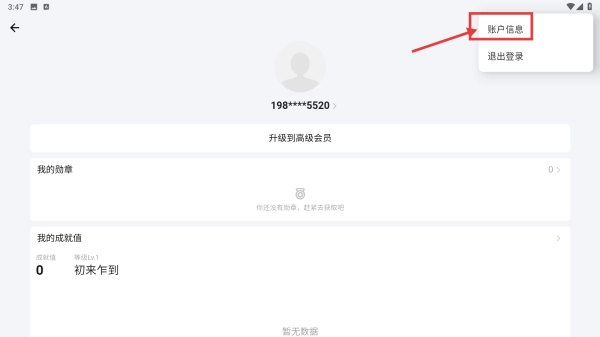 3、在列表页中,点击账户信息选项,进入账户详情页面。