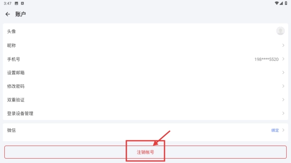4、在账户详情页面,点击注销帐号选项,按提示完成账号注销操作。
