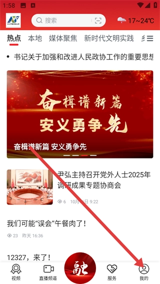 1、启动掌上安义应用,进入主界面后,点击页面底部导航栏中的“我的”选项。
