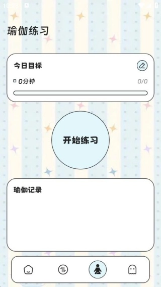 3、设置今日瑜伽练习目标时长,点击开始练习进行练习,同时记录练习情况,查看进步轨迹。