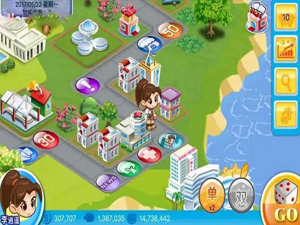 通过自由掷骰子确定前进的步数,借助购买土地、建造房屋和收取租金的方式,不断扩张自身的势力范围!