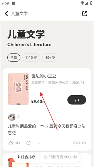 3、在儿童文学图书页面,选择想要的图书,如窗边的小豆豆,进入该图书详情页面。