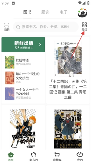 1、打开多抓鱼二手书店,在主页点击右上角的分类选项,进入图书分类界面。