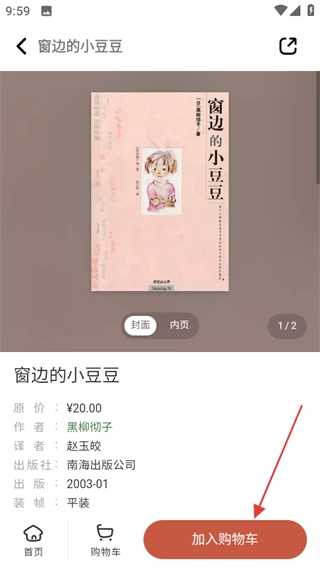 4、在图书详情页面,若想购买该图书,点击加入购物车,可将图书加入购物车。